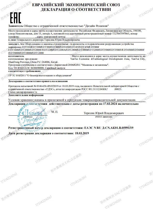 8、在产品标签上标示EAC认证标志,凭证书复印件清关;